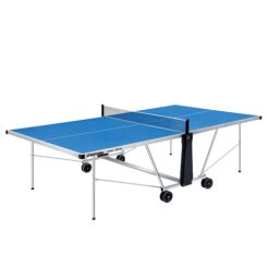 The 2 halves and 3″ lockable wheels and casters makes this ping pong table easy to roll and move around when not in use. Can also be used as an indoor ping pong table.