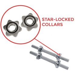 - SAFETY – The knurling on the bar allows your hand to grip the bar securely. These weight plates are secured with star-locked collars to prevent them from sliding off during the exercise.